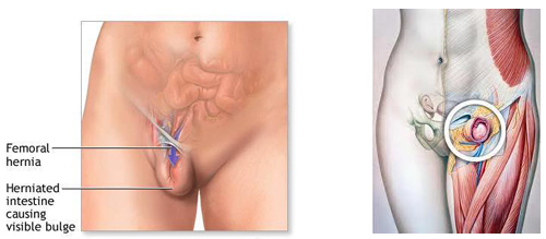 Η μηροκήλη δημιουργείται από την παρουσία , μέσα από τον μηριαίο δακτύλιο , συνήθως επίπλουν αλλά και σπανιότερα εντέρου (λεπτού κυρίως αλλά και παχέος).Η στενότητα και η έλλειψη ενδοτικότητας του μηριαίου δακτυλίου , έχει σαν αποτέλεσμα το έντονο άλγος και την πολύ συχνή περίσφιξη σαν επιπλοκή στην μηροκήλη.